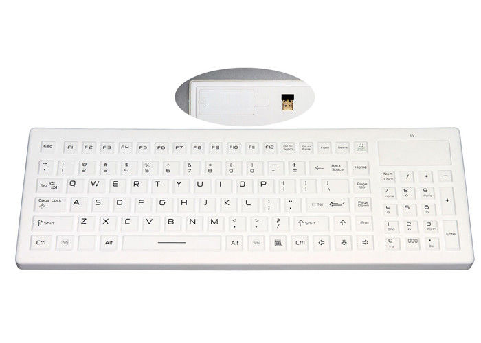 SKB-126-WL ของ KINGLEADER เป็นคีย์บอร์ดการแพทย์ Wirelss กันน้ําที่มี Number Pad และตําแหน่งพิเศษสําหรับการพิมพ์โลโก้ที่กําหนดเอง